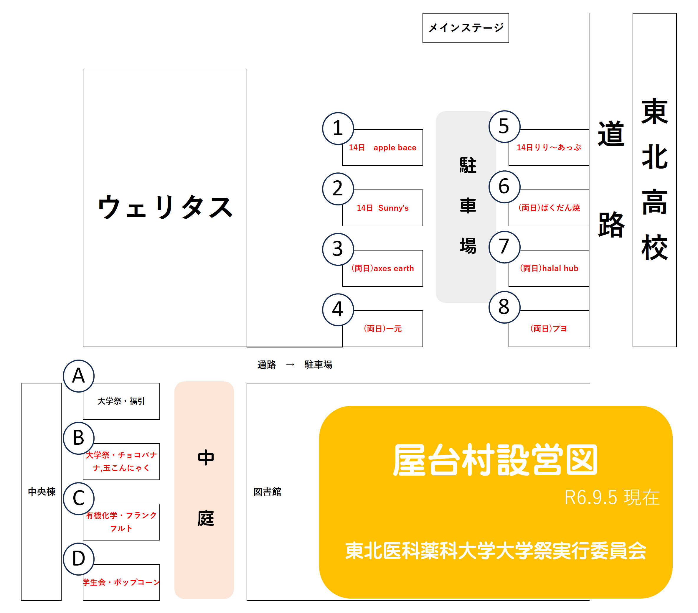 今年度の大学祭もたくさんの模擬店と屋台が出店予定!お店やメニューの詳細は設営図下のリンクをクリック!