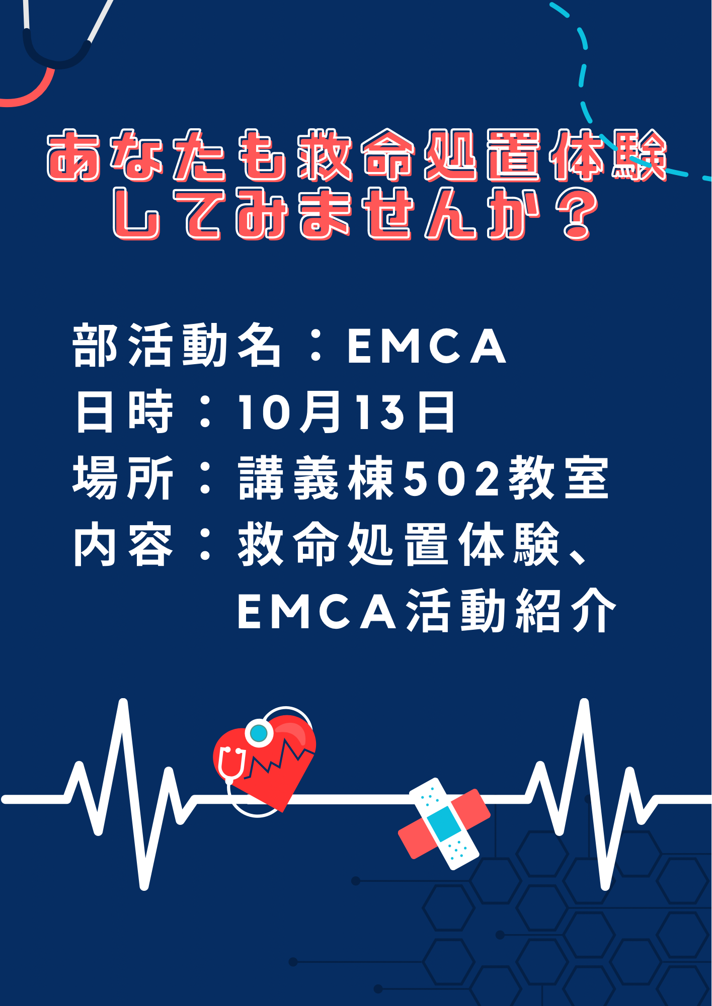 【EMCA】(502講義室)※初日のみ※あなたも救命処置体験してみませんか?!